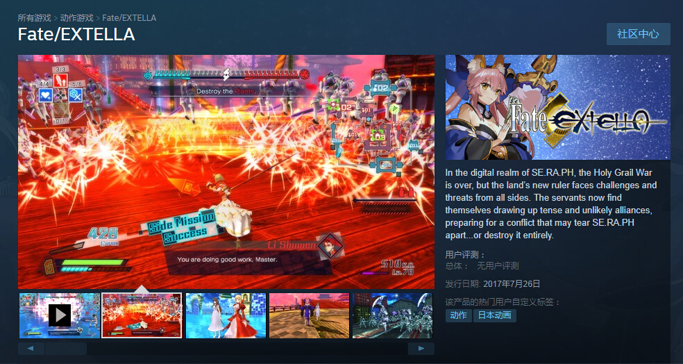 《Fate/EXTELLA》PC版页面今日在Steam平台上开启