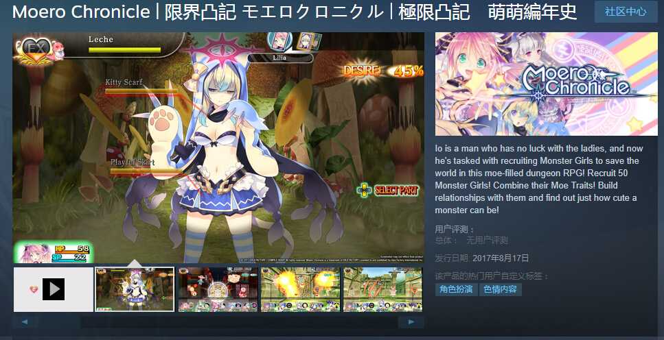 Compile Heart旗下游戏《限界凸记:萌萌编年史》确定将于8月17日登陆Steam平台,并且支持繁体中文字幕。据悉本作讲述了一个人类与怪物女孩共存的世界,伊欧跟他的怪物朋友莉莉亚展开冒险,并将找出怪物与人类为敌的原因。