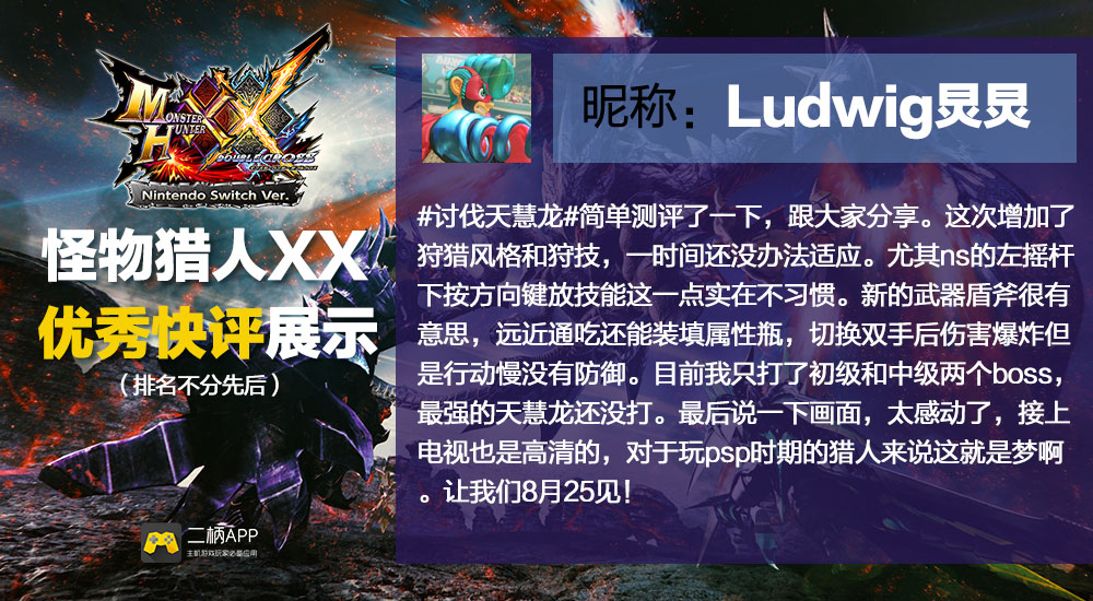 #预购留Demo快评赢点卡#Switch版《怪物猎人XX》离发售已经很近了,而我们的快评活动仍在火热的继续中,一些体验过的玩家撰写了他们心中对本次Demo的评价,有理有据,让人信服。我们特地挑选了其中几位玩家的快评进行展示。提醒大家: 本次活动将在8月20日截止,同时满足以下两个条件(1)商城预购《怪物猎人XX》,(2)根据实际体验内容撰写体验Demo快评 即有机会获奖,我们在活动截止后评选4位玩家获得eShop充值卡(3DS/WiiU/NS平台通用)!赶快来参加活动吧!