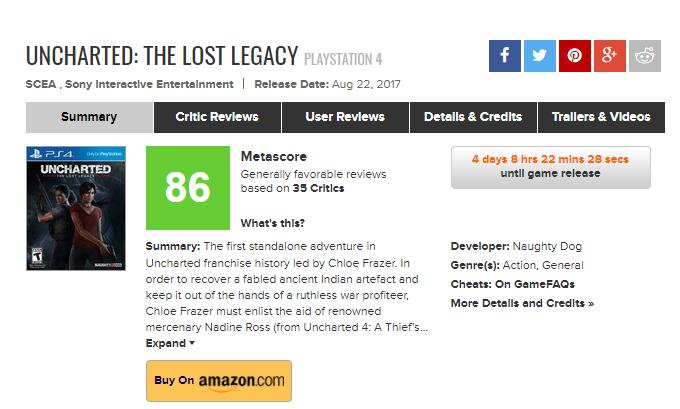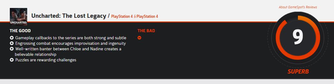 《神秘海域:失落的遗产》全球媒体评分陆续解禁,目前MetaCritic均分86!