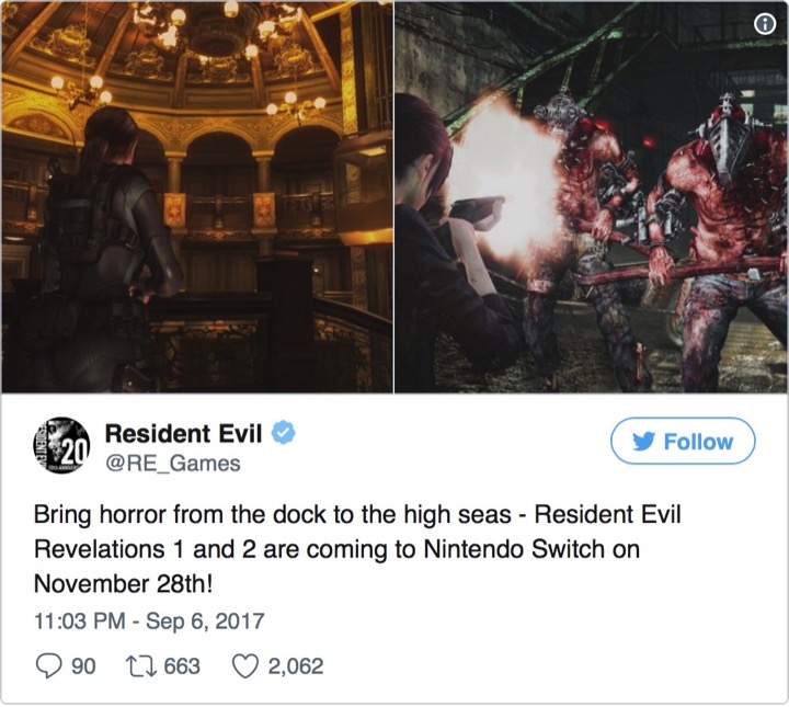 Capcom宣布《生化危机:启示录1 & 2》将于11月28日登陆NS平台