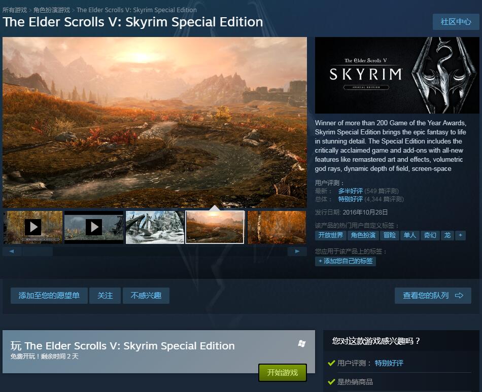 本周末《上古卷轴5:天际 特别版》在Steam和Xbox平台免费试玩