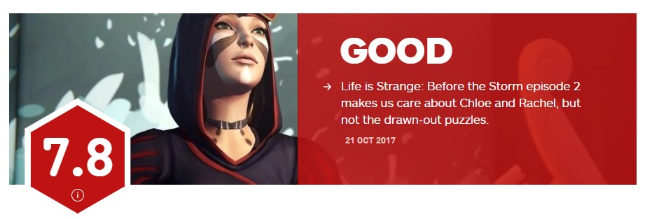 IGN今日放出了对《奇异人生:风暴之前》第二章的评分,第二章最终获得了IGN编辑7.8分的评价。“《奇异人生:风暴之前》进一步挖掘了克洛伊和瑞秋之间的情感联系,让人很想看到她们两个能有一个好的结局。与其他NPC的互动虽说依旧让人觉得有些不那么重要,不过要比第一章处理得好了很多,有些选择确实让人觉得它会影响结局。章节末尾的处理给人一种戛然而止的感觉,不过也让人更想知道接下来的故事。”