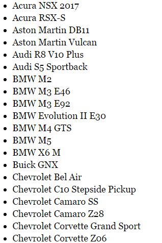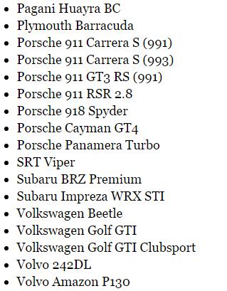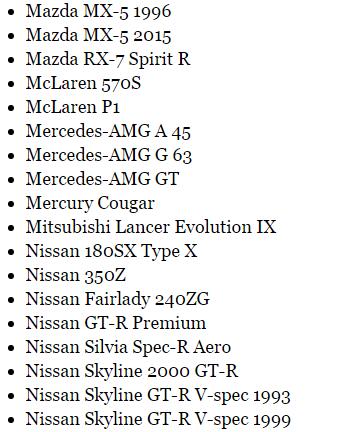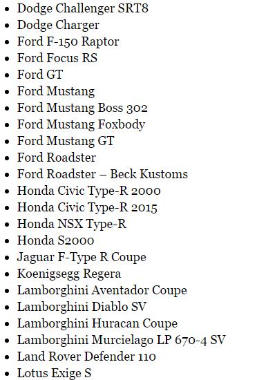 《极品飞车:偿还》公布车型列表,法拉利再度缺席