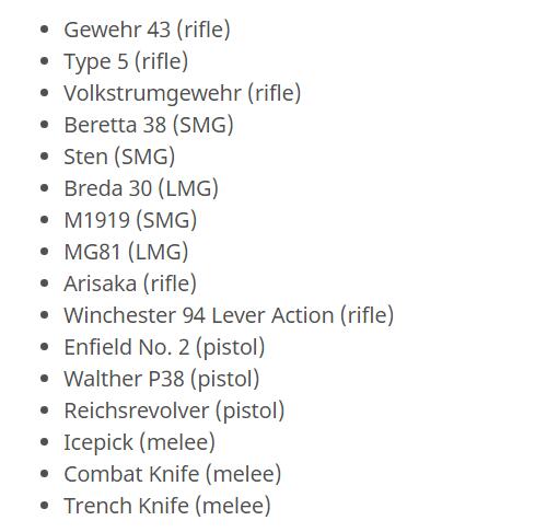 《使命召唤:二战》中的数字点数(使命召唤点数)即将于11月21日到来,届时SHG可能会同步开启游戏中的微交易系统。目前游戏中共有两种补给箱,分别是“普通”和“稀有”级别,今日有网友曝出游戏即将新增“史诗”、“传说”两种新稀有度的箱子和“武器补给箱”,可以开出的装备名单也已经披露,其中有一些是之前就泄露的,有一些是目前在单人战役中出现的,还有的则是之前《使命召唤》系列的武器。