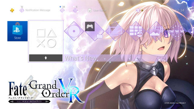 为庆祝PS VR游戏《Fate/Grand Order VR》将于12月6日免费在PSN商店推出(目前仅知有日服),PSN日服将于2017年12月6日~2018年3月6日期间,向PS+会员玩家提供玛修的PS4主题与个人头像。