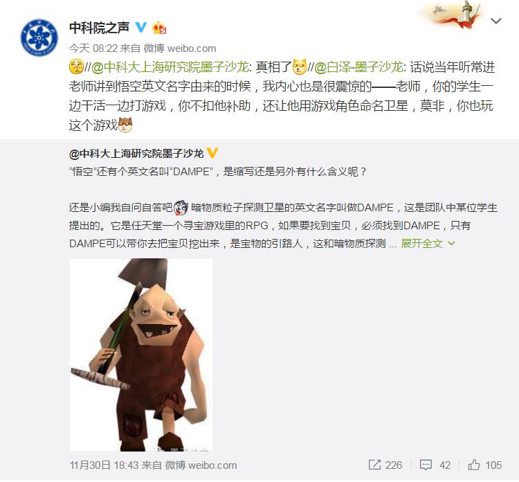 我国暗物质粒子探测卫星“悟空”(DAMPE)英文名竟来自于《塞尔达传说》