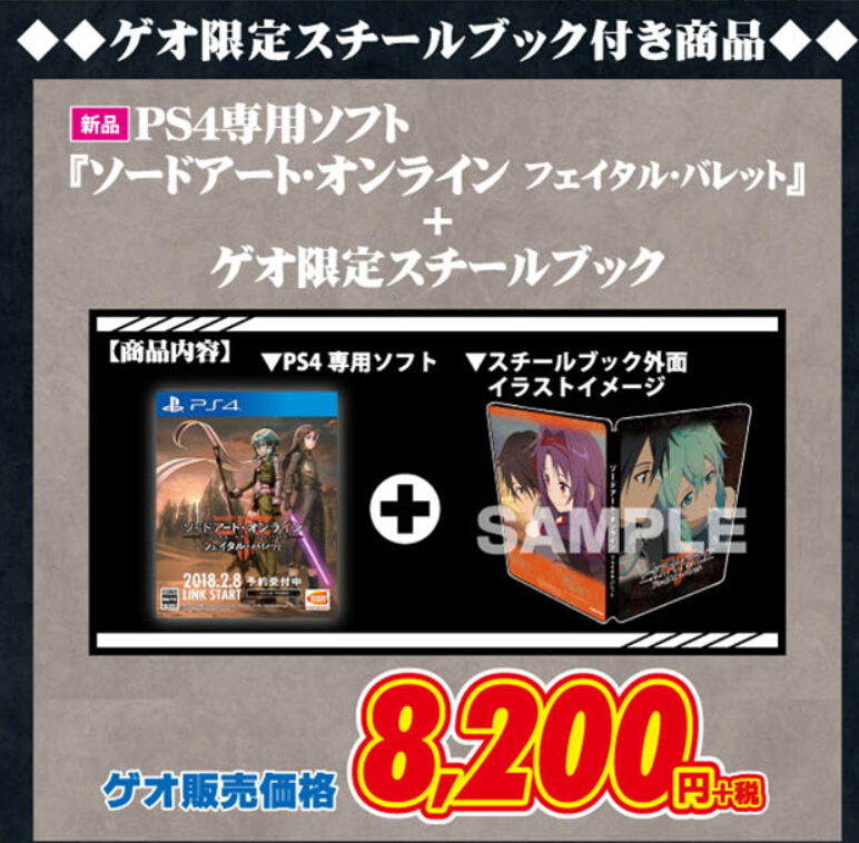 日本零售商GEO推出PS4《刀剑神域:夺命凶弹》独家铁盒特典