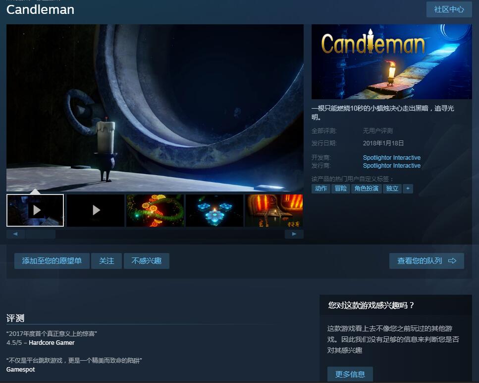 国产独立游戏《蜡烛人》今日正式上架Steam,将于1月18日发售