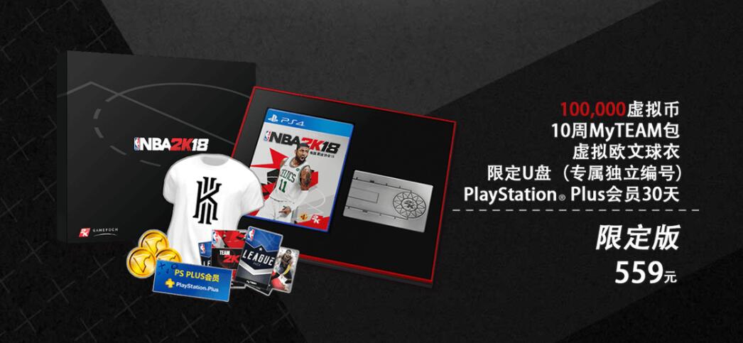 【抽奖】虽然比预想中来得要晚,但国行版《NBA 2K18》的限定版终于在最近正式推出了。限定版中除了游戏外,玩家还将可以额外获得一个拥有限定编号的2K专属限定优盘,以及包括10万点虚拟币、10周MT球员包、虚拟欧文球衣等诸多数字特典,对于其559元的售价来说可以算是相当超值的一个版本。分享本资讯至各大社交平台的玩家将由机会参与抽奖,赢取这一份限定版的《NBA 2K18》(仅开封外包装),抽奖有效日截止至2017年12月20日00:00。
