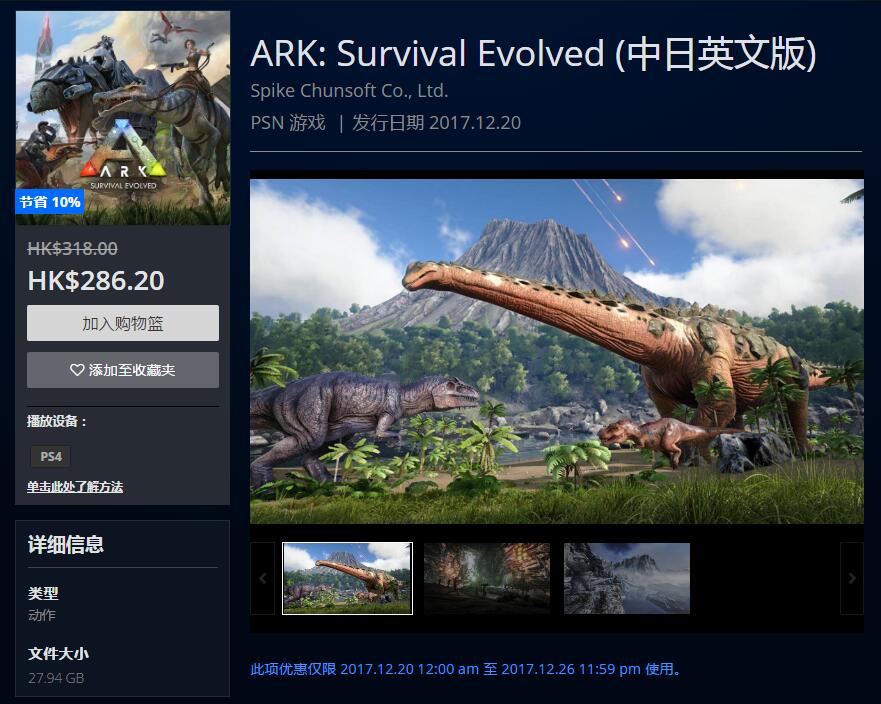 多人生存游戏《方舟:生存进化》今日登陆港服PSN,限时折扣价268港币