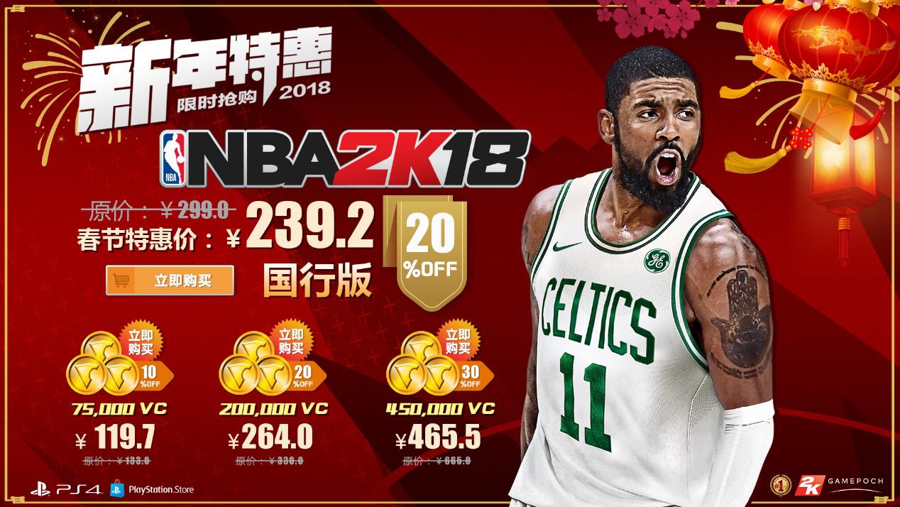 迎新春贺新喜,国行《NBA 2K18》春节8折特惠