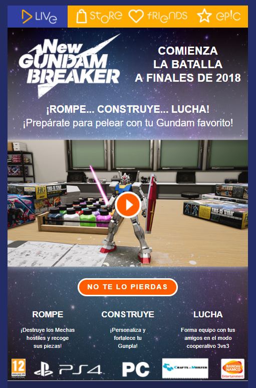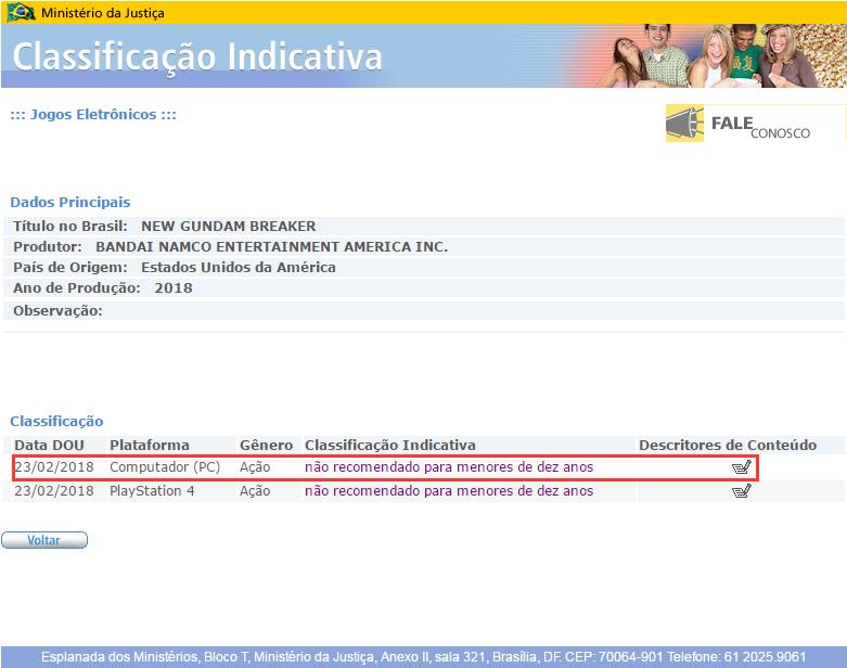 《新·高达破坏者》或将登陆PC?今日一家巴西的游戏分级委员会网站上出现了《新·高达破坏者》PC平台的分级信息。除此之外,Bandai Namco欧洲发布的宣传图上也出现PC平台的标志。目前官方暂未公布有关本作PC平台的正式消息。《新·高达破坏者》预计将于2018年登陆PS4平台,本作将使用虚幻4引擎制作开发。