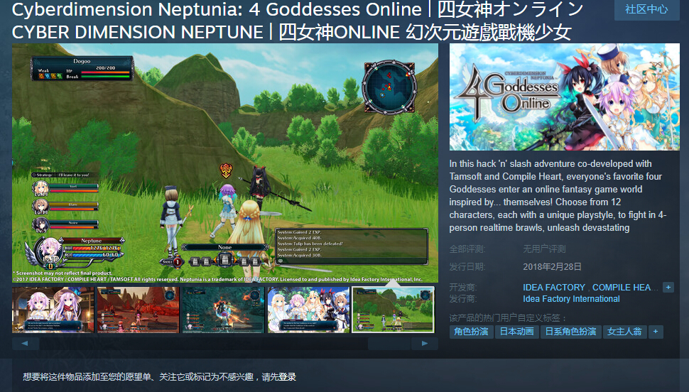 欢乐百世宣布,日系RPG游戏《四女神Online》中文版将于2018年2月28日上线Steam平台,售价116元人民币,发售首周内购买享受7折优惠活动。