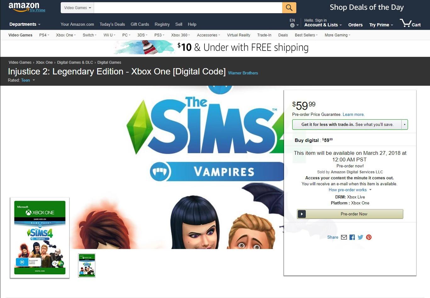亚马逊今天早些时候上架了一款叫做《不义联盟2:传奇版》的商品,虽然该页面随后被删除,但我们仍可以通过缓存查看到该页面(这款商品不知何故被配上了《模拟人生4》的图片)。商品详情页显示《不义联盟2:传奇版》将于3月27日发售,售价59.99美元,包括之前陆续发布的一系列人物和特典,比如红头罩、绝对零度、黑蝙蝠、地狱男爵、忍者神龟等共计10名追加角色,还有多款人物皮肤。