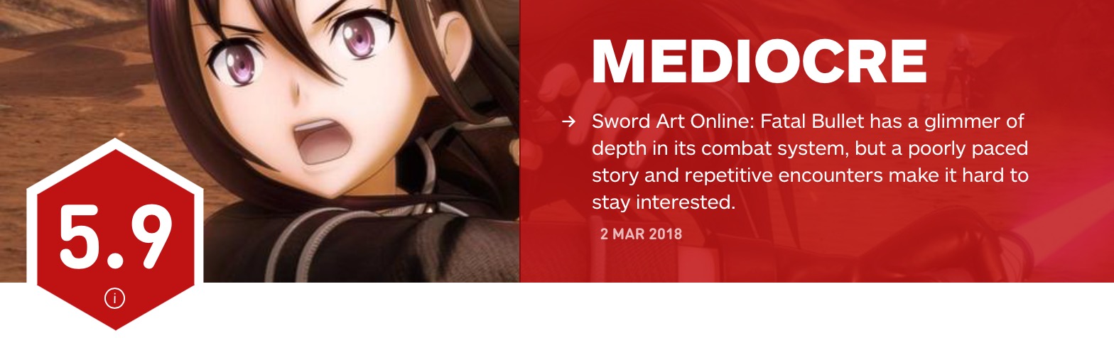 《刀剑神域:夺命凶弹》获IGN5.9分评价 战斗系统有深度重复性高
