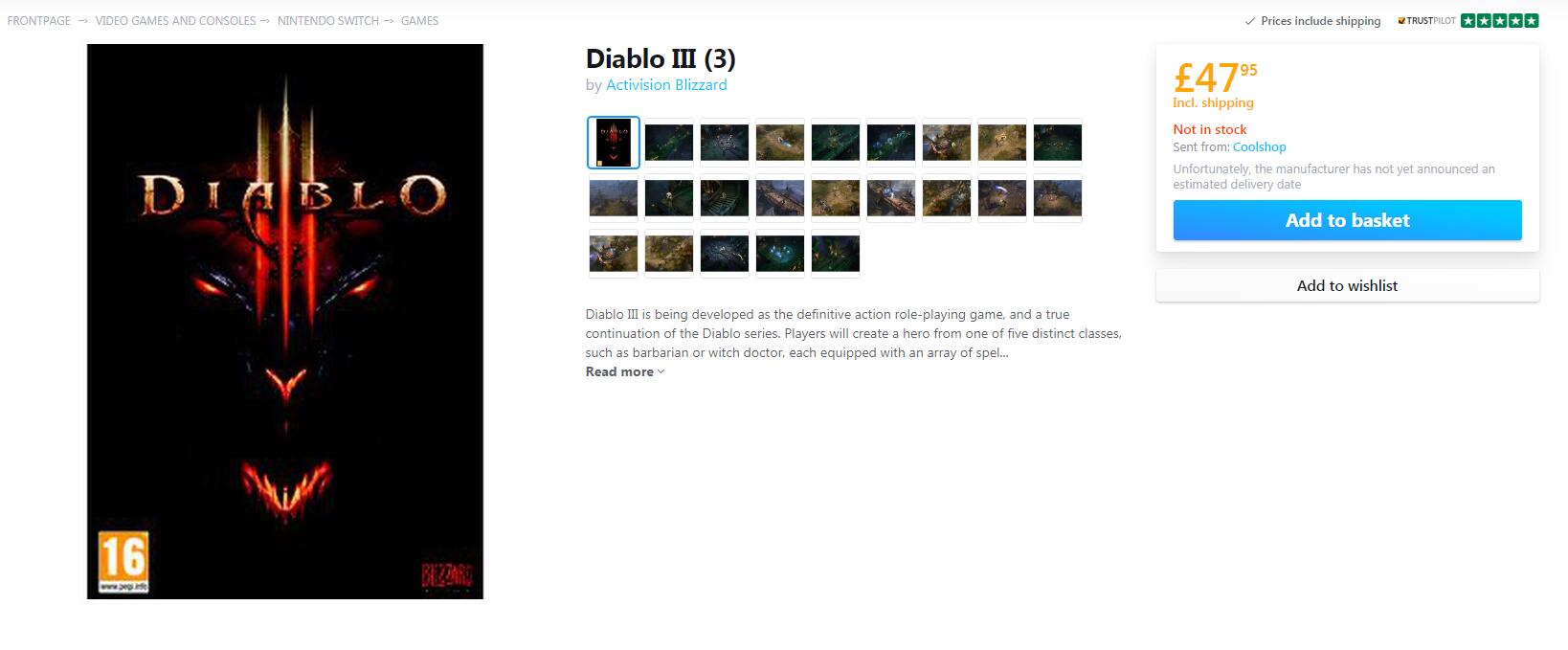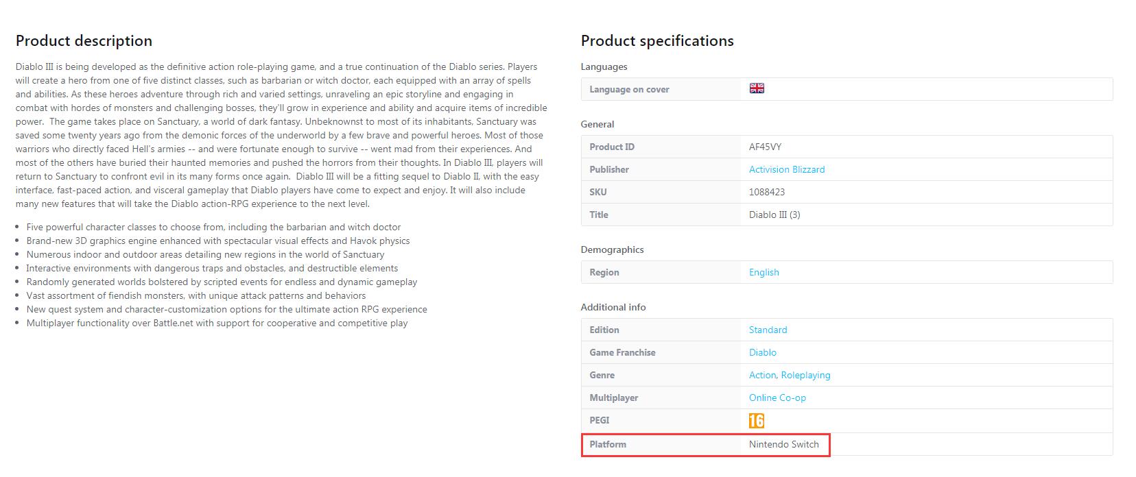 Switch《暗黑破坏神3》现身英国零售网站 游戏登陆Switch到底是真是假?
