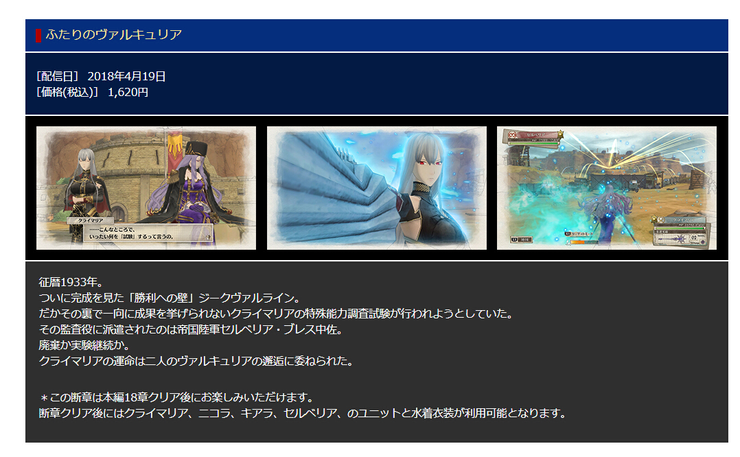 《战场女武神4》4个收费DLC内容公布,季票售价4320日元