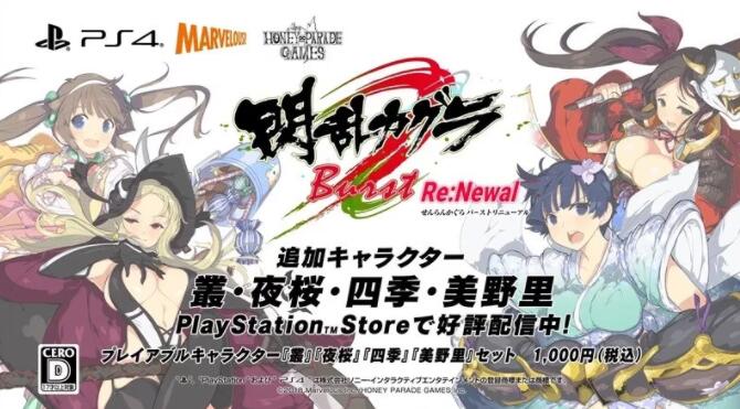 Marvelous今日开放了PS4游戏《闪乱神乐Burst Re:Newal》“丛”、“夜樱”、“四季”、“美野里”DLC角色组合包的下载,在3月23日~4月5日将进行免费下载,活动结束后将恢复1000日元(约60元人民币)的售价。