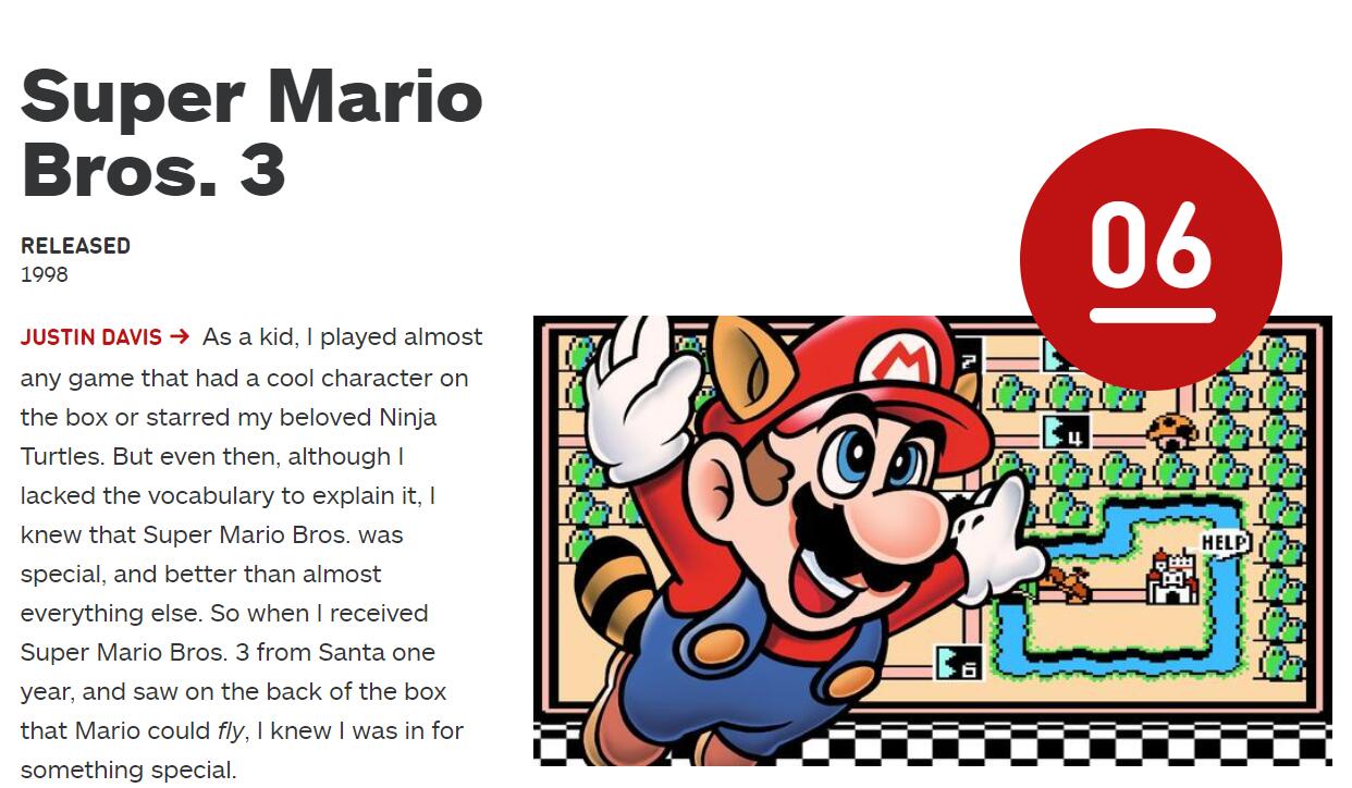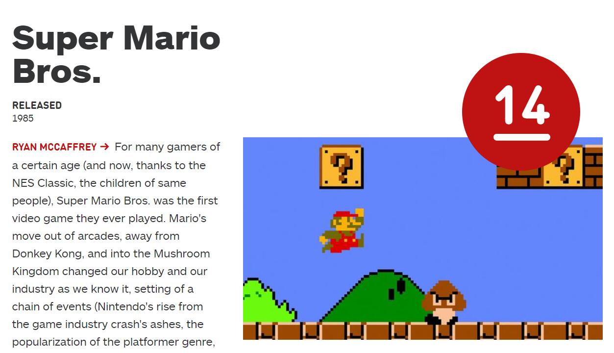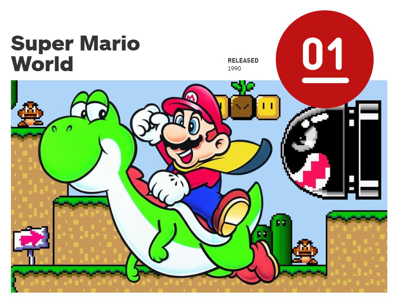 IGN百大游戏榜单前20名公布,任天堂游戏《超级马里奥世界》荣获第一!