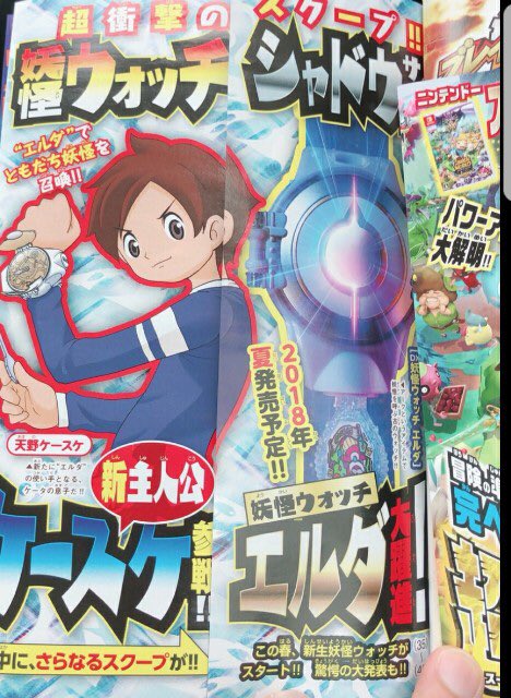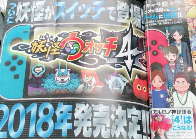 LEVEL 5旗下《妖怪手表》系列新作《妖怪手表4》最新杂志偷跑图,本作将于2018年内登陆Switch平台,《妖怪手表4》为妖怪手表系列的“新生作”。