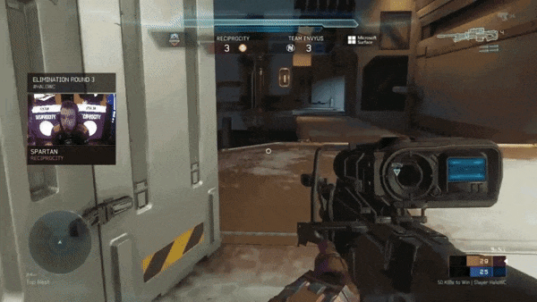 最让主机平台在线游戏玩家害怕的事情最近发生在了《光环5:守护者》选手Tyler “Spartan” Ganza身上,在参加一项奖金为100万美元的锦标赛时,在他与敌人遭遇后开始冲刺并准备抢夺camo的瞬间,他所使用的手柄突然断开了连接,虽然最后他的队伍获得了击杀,但是对方的队伍却拿到了camo,而最后他所在的Reciprocity队伍也以3:4负于对手Envy,拿到了第四名直接回家,最终无缘参与争夺100万美元巨额奖金的资格。(Gif:790KB)