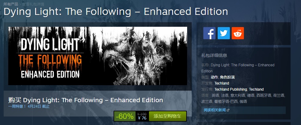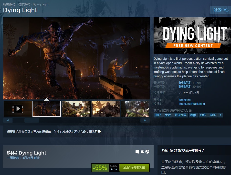 《濒死之光》开启折扣,仅售57元