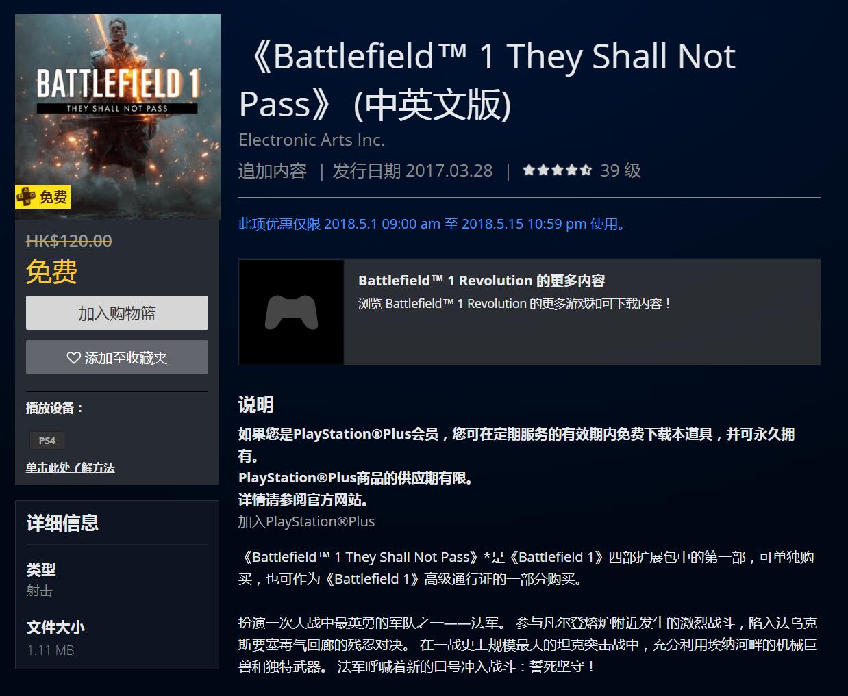 EA又来送DLC!原价120元的《战地1》“誓死坚守”现可免费下载!