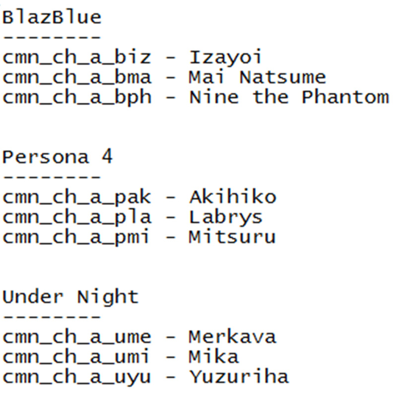 有玩家从《苍翼默示录 Cross Tag Battle》Beta测试版的数据中发现了一些尚未公布的DLC角色,虽然数据中没有展示角色图片,但从图片命名可以推断出这些角色分别为:十六夜、麻衣·枣、奈茵(苍翼默示录)、桐条美鹤、真田明彦、拉比利斯(女神异闻录4 午夜竞技场)、梅尔卡瓦、咪咔、让叶(夜下降生)。