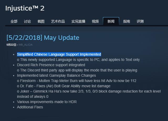 Steam平台《不义联盟2》更新简体中文支持,部分平衡性调整