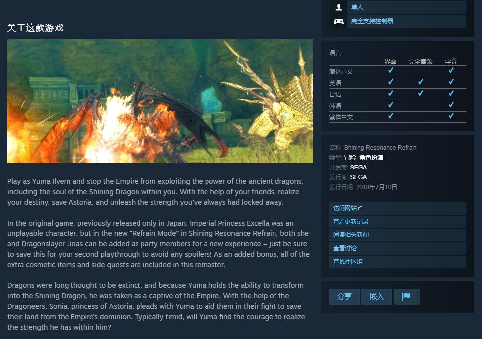 Steam《光明之响 龙奏回音》现已添加简/繁体中文支持