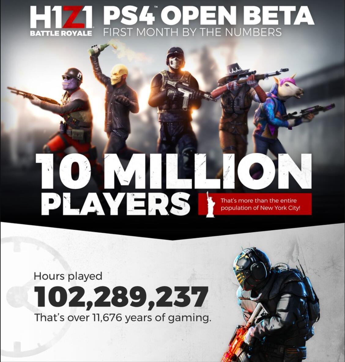 《H1Z1:大逃杀》玩家数量已超1000万,官方送出免费降落赛及载具皮肤
