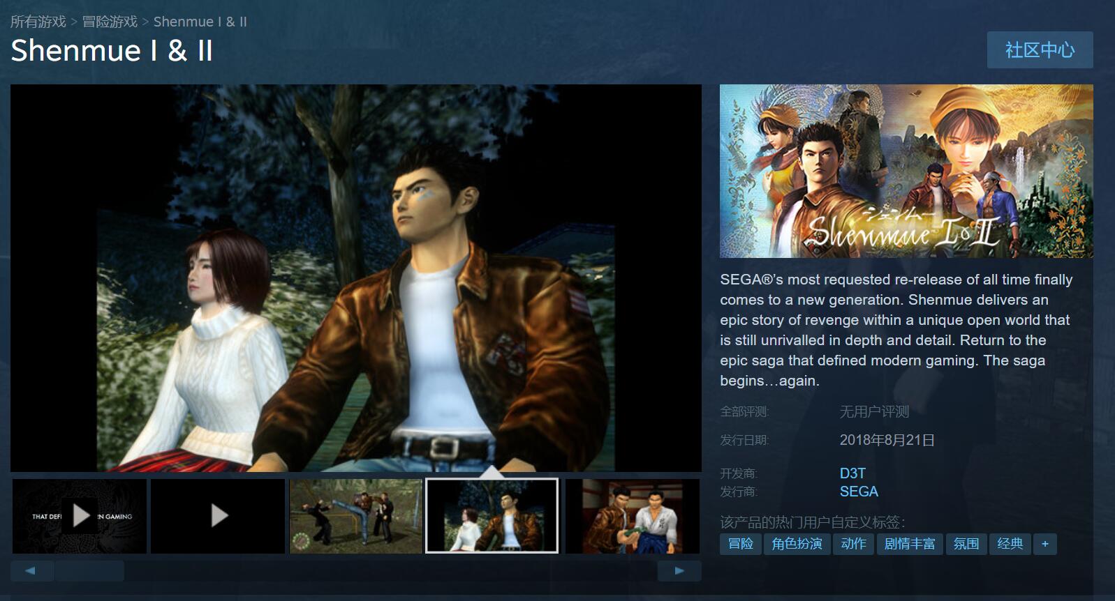 《莎木1&2》确定将于8月21日发售,Steam平台预售价178元