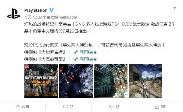 PlayStation香港今日宣布PS4《机动战士高达:激战任务2》基本免费中文版将于7月26日推出,本作是一款主打6V6的多人线上对战游戏。PSN港服商店今日还上架了事先购入特别包,分为“大功率吉姆”和“大魔热带型”两个版本,预购可获得代币30枚及事先购入特典。