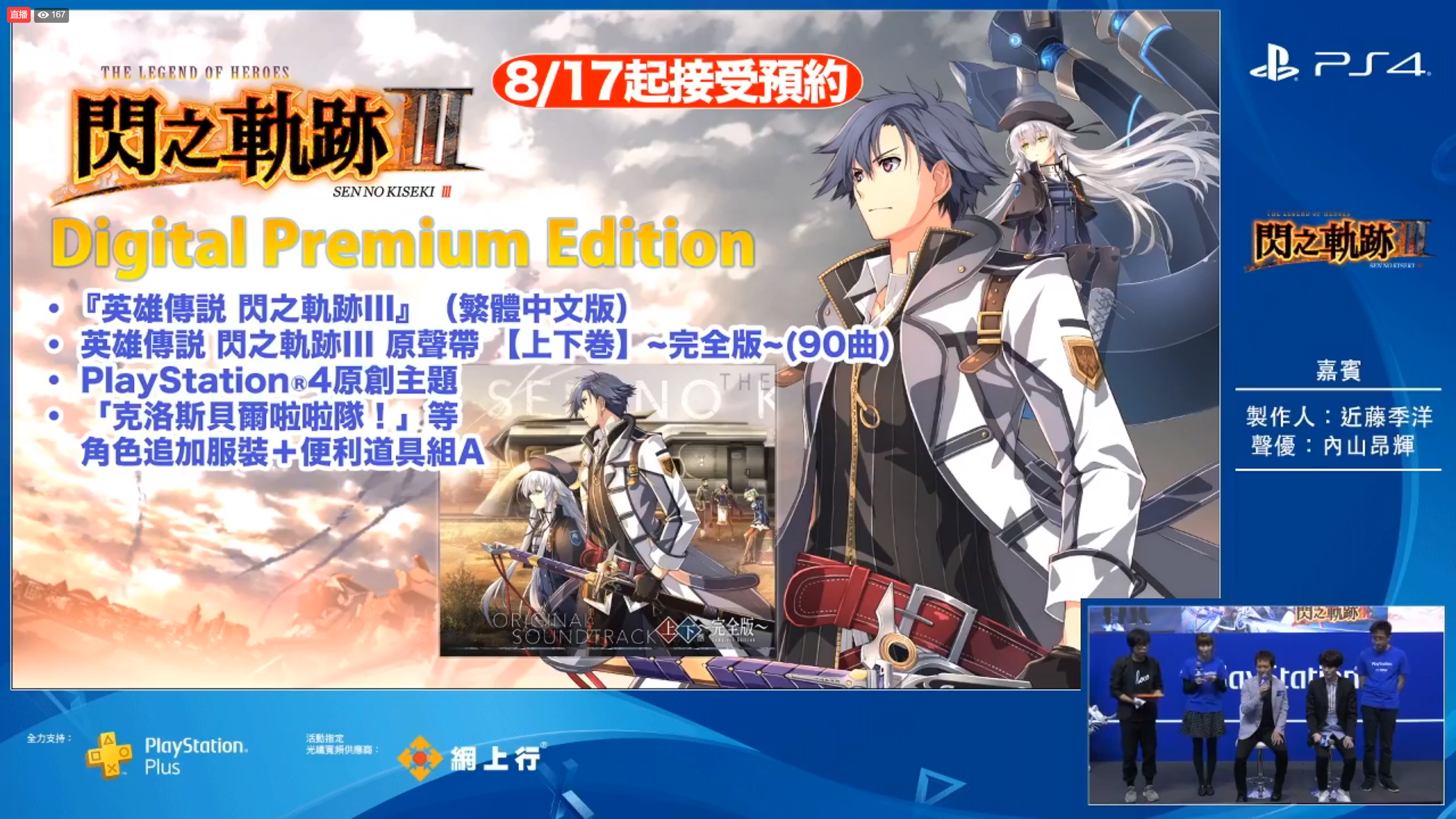 #速报# Falcom社长近藤季洋刚刚在香港动漫电玩展上宣布,《英雄传说:闪之轨迹3》中文版将于2018年11月1日发售!除此之外,游戏初回限定版以及数字豪华版内容将如下图所示!8月17日开启预约!