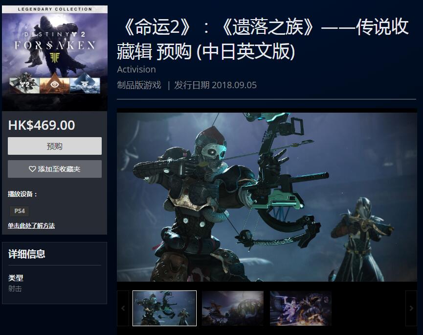 《命运2:遗落之族》传奇收藏版已在港服PSN商店开启预购