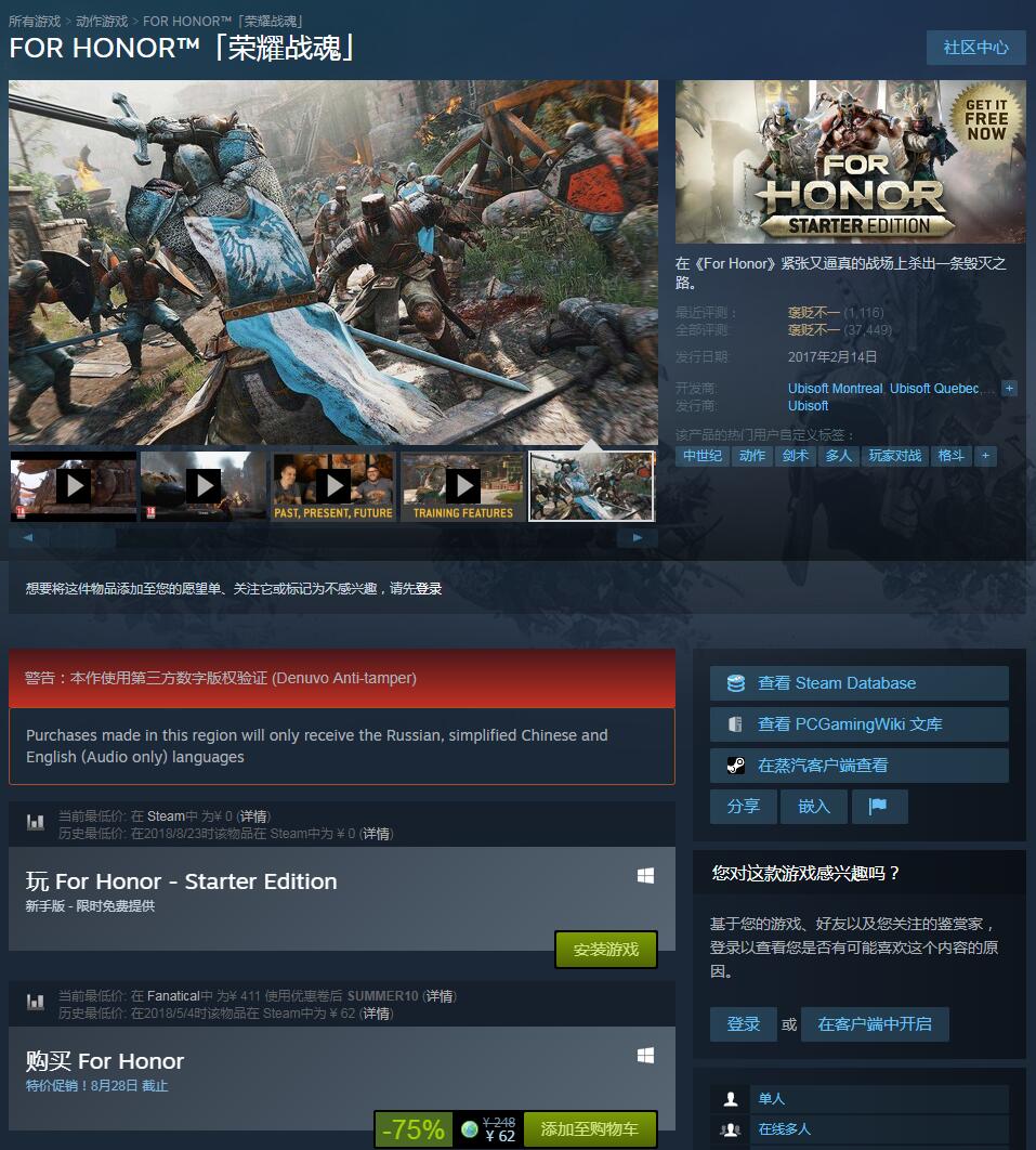 《荣耀战魂》Steam免费领取活动正式开启,各版本2.5折优惠折扣!