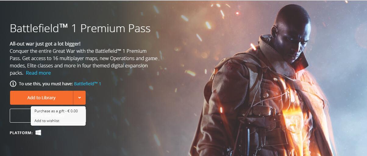 《战地1》高级通行证现已在Origin平台开放免费领取