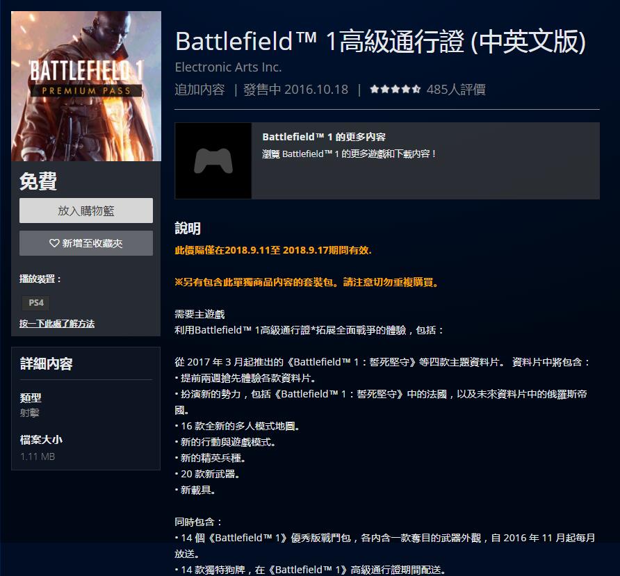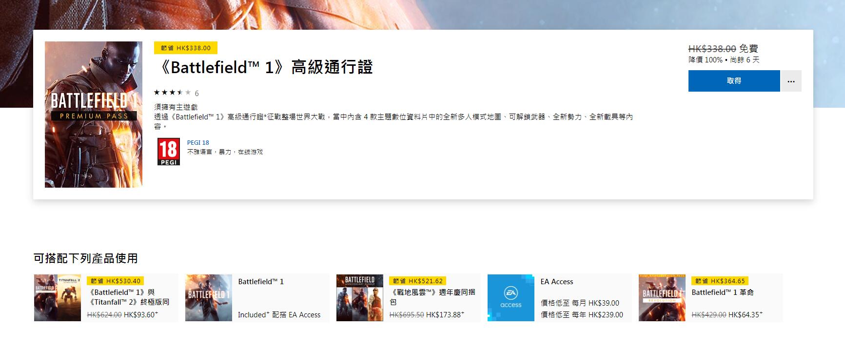 #更新#港服PSN和Xbox商店上的《战地1》的高级通行证也已经可以免费领取。