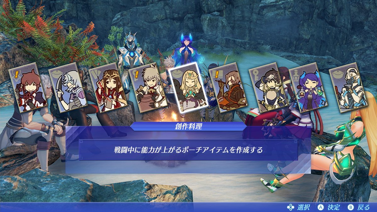 《异度神剑2:黄金之国》官推公布了一组全新游戏实机截图,主角一行人在旅途中可以设置营地进行休息,在休息期间还可以使用在战斗中收集的各种道具素材来制作美味的料理。每个角色都有自己专属擅长的技能,例如“光”就很擅长制作美味的料理。