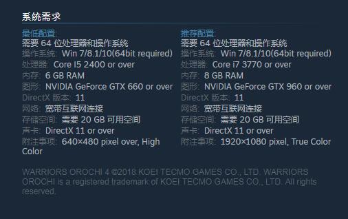 《无双大蛇3》PC配置需求公布,GTX 960即可畅玩!