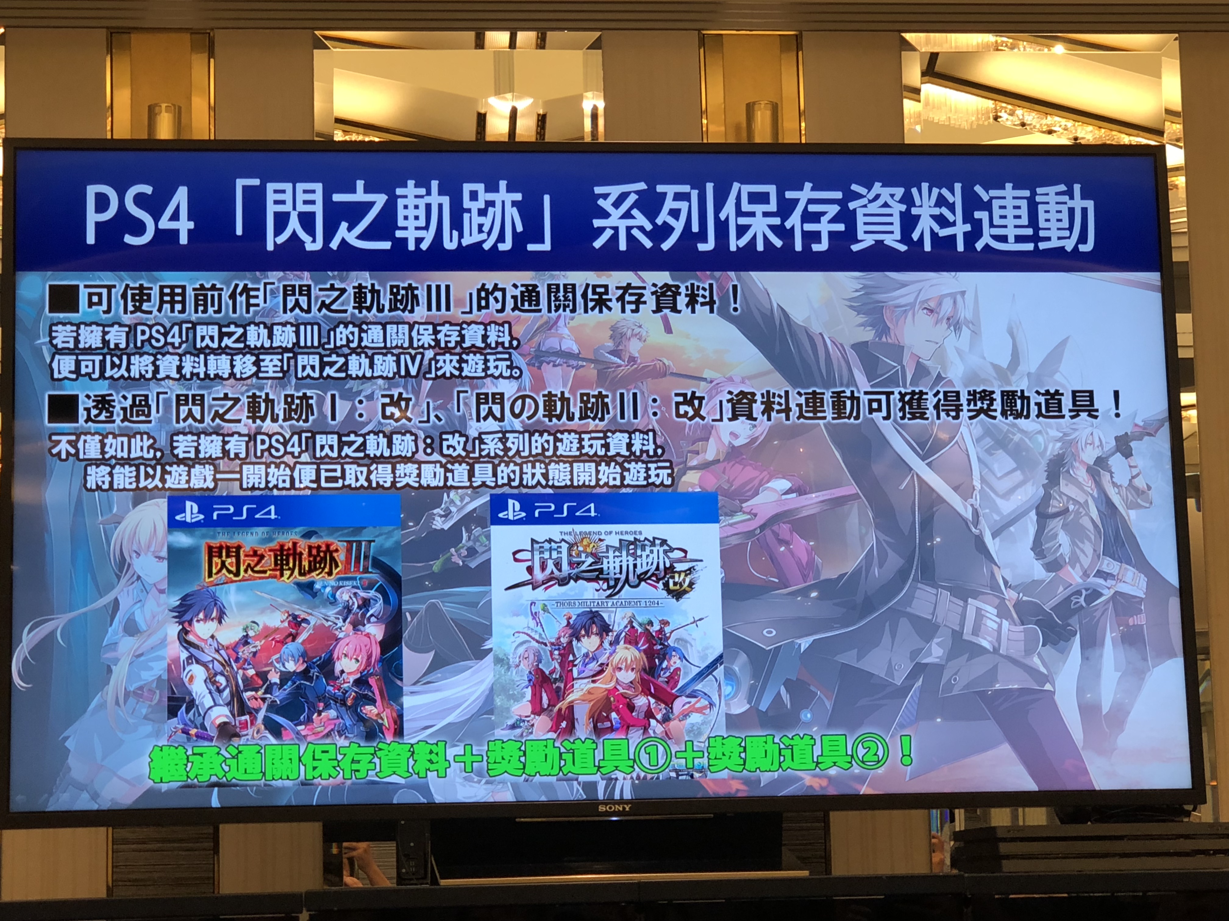 #TGS2018#Falcom刚刚在TGS上公布了中文版《英雄传说 闪之轨迹4》的发售日,中文版游戏将于2019年3月7日正式发售!若是拥有《闪之轨迹3》的通关存档,可以迁移至《闪之轨迹4》中使用!《闪之轨迹 1&2:改》的游戏存档则可用来获得奖励道具。游戏的限定版内容也一并公布,详情请见配图。(由二柄APP在TGS现场发回的报道)