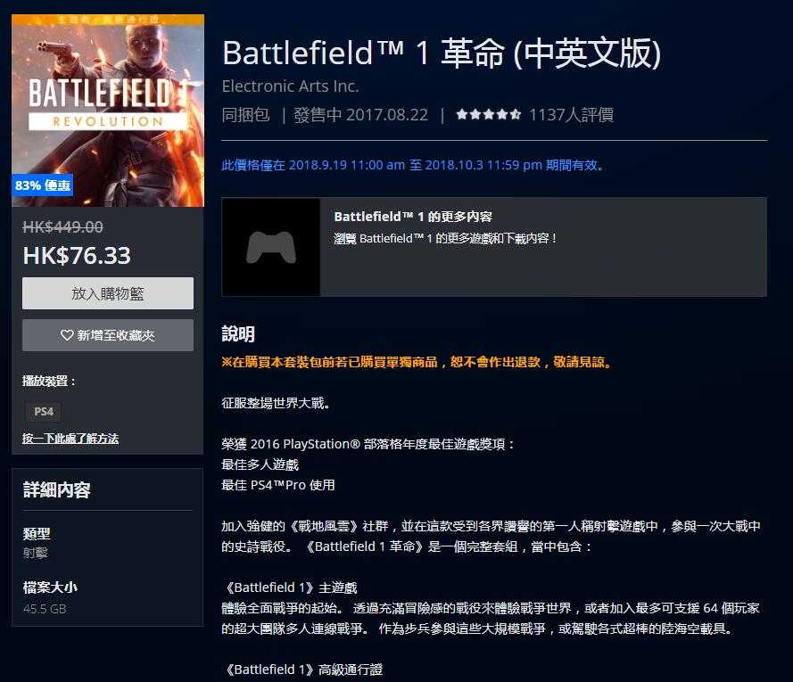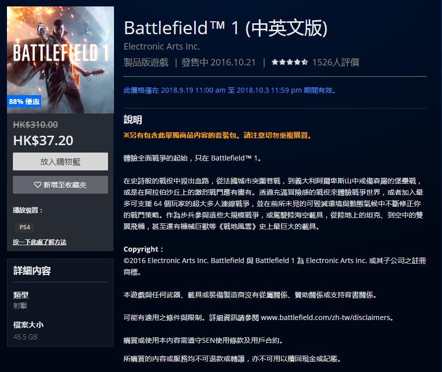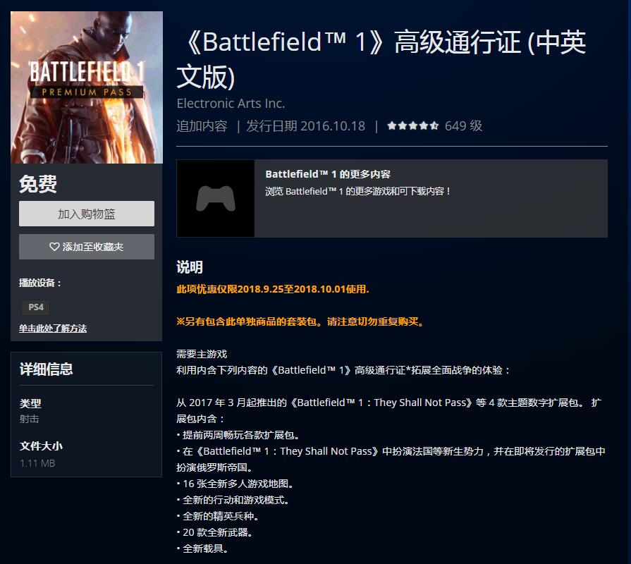 错过了上次《战地1》“高级通行证”的免费领取活动?没关系,EA又来送福利!《战地1》“高级通行证”免费领取活动再开!在10月3日之前,玩家可以在全平台免费领取游戏的高级通行证。通行证可以解锁游戏的全部地图以及各种枪械皮肤载具等内容。而同时《战地1》在PC和PS4平台这几天也在进行优惠折扣活动,特别是PS4平台,标准版游戏已经跌破了40港币的“底线”。《战地1》在整个系列中属实是比较出色的作品,这次游戏内容“一锅端走”的机会不要错过啦!