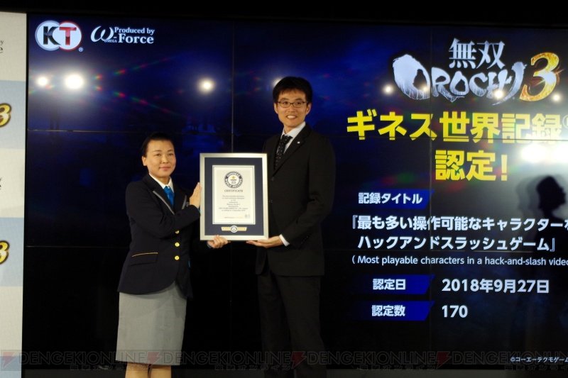 《无双大蛇3》获得了“可操控角色数量最多的无双游戏”世界吉尼斯纪录