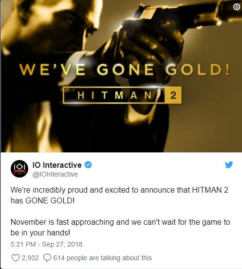 《Hitman 2》已经进厂压盘,开发商对新作信心十足