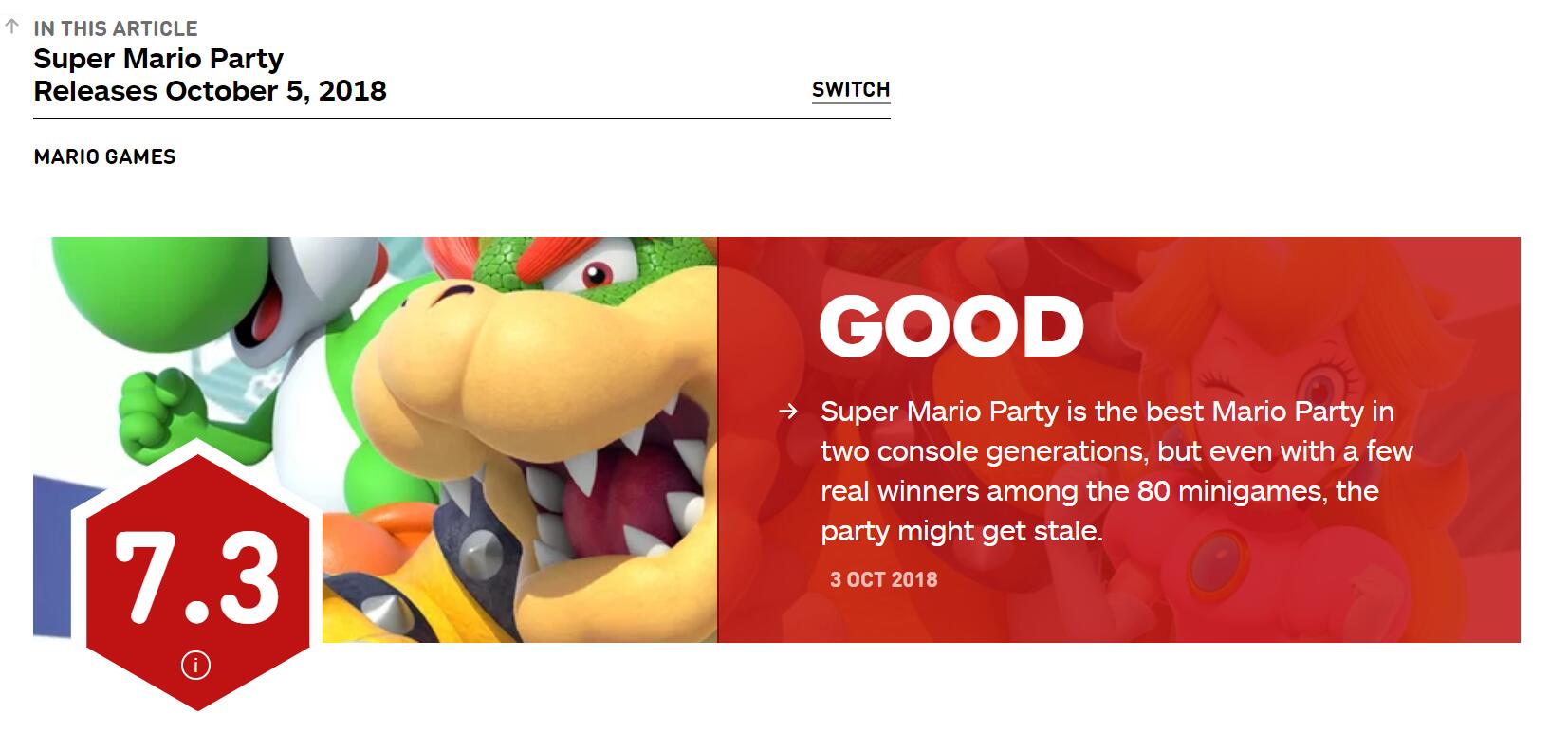 IGN为NS版《超级马里奥派对》给出7.3分
