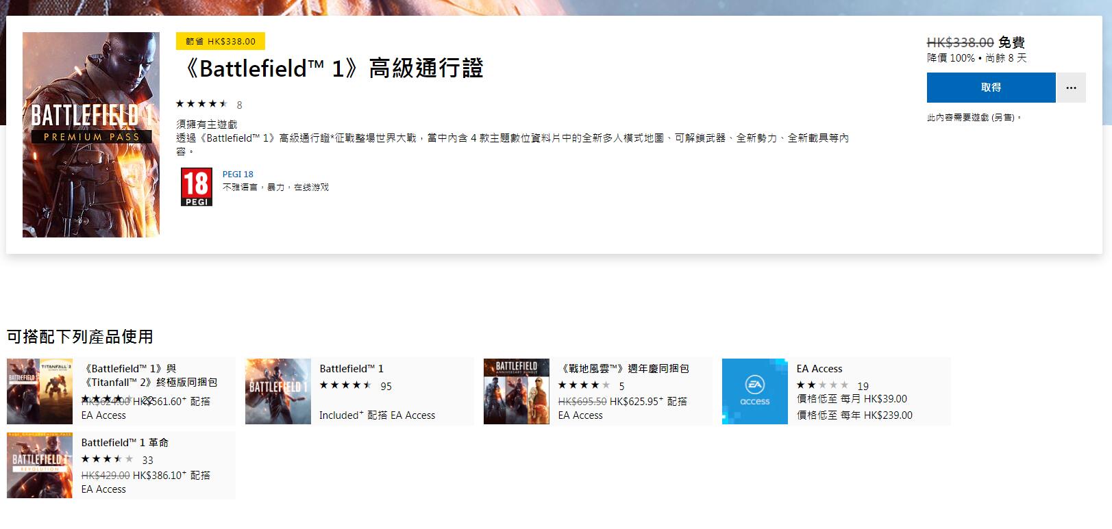 《战地1》“高级通行证”免费领取活动又开始了!目前游戏的高级通行证在PS4、Xbox以及Origin商城都可以免费领取!通行证将包括四款扩展内容,可以解锁游戏的全部地图以及各种枪械皮肤载具。目前港服PSN商店的《战地1》正在进行特价折扣,标准版仅售35元;Origin平台也可以以1.5折的价格购买。本次免费领取活动截止至10月30日。话说回来,这好像已经是近期第三次免费送了。