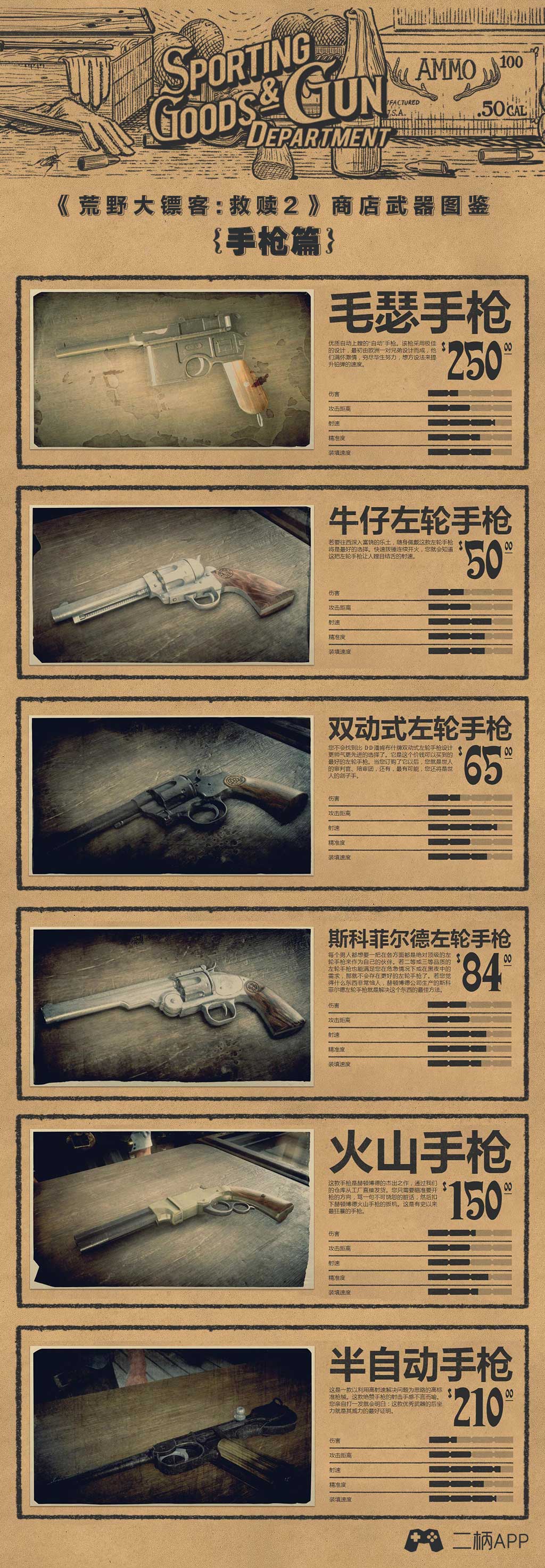 《荒野大镖客:救赎2》商店贩售武器图鉴,为你推荐能买到的最好用的枪械