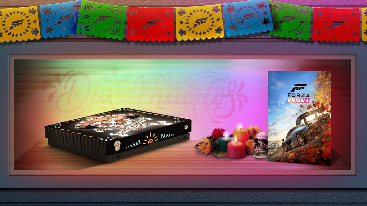 亡灵节是起源于墨西哥亚用于缅怀先祖的传统节日。《极限竞速:地平线4》的团队与三位艺术家进行合作,推出了特别款的Xbox One X主机以及几款游戏内的主题T恤。其中的两件T恤开放给玩家使用游戏点数购买,而另外一件将会在周五开放给所有玩家,而这次的主机也将通过抽奖送出。