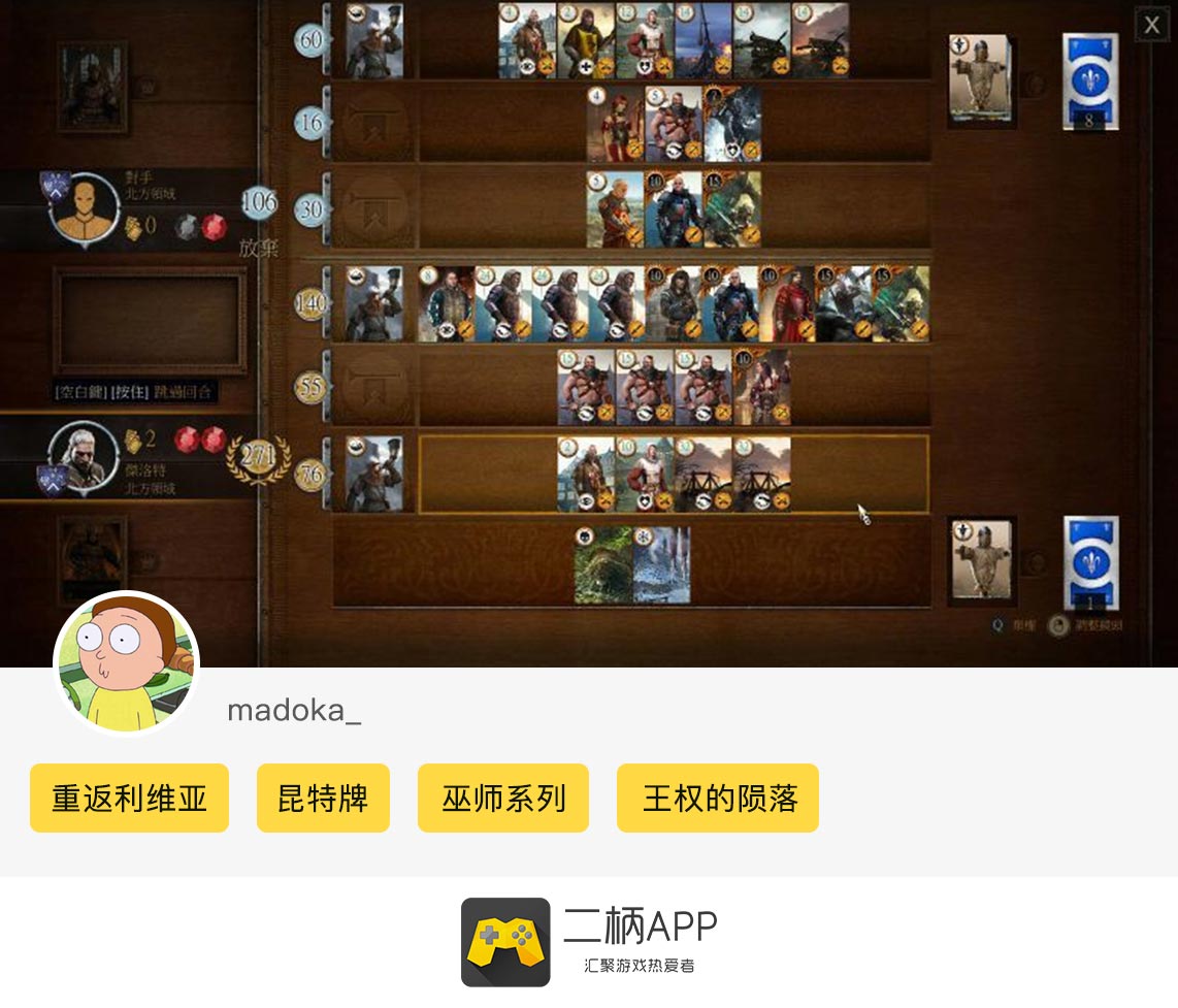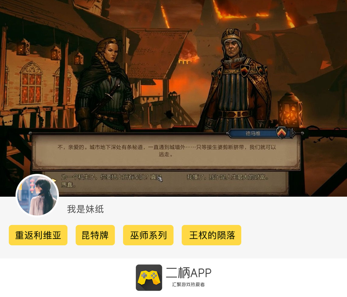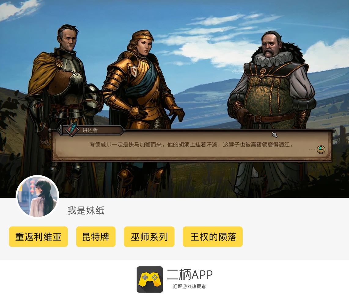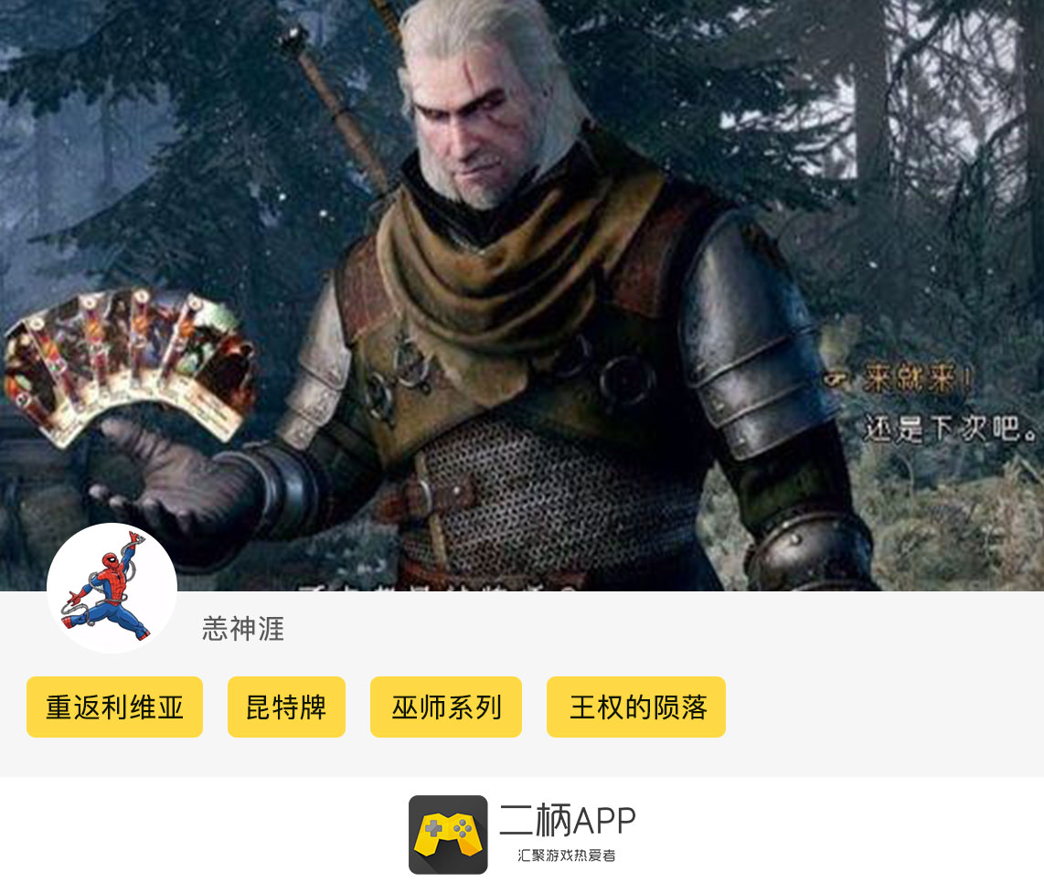 “重返利维亚,探寻白狼的女王背后历史”《巫师之昆特牌》二柄APP炫图活动已经完美落幕,“最具人气奖”(3位)以及“最佳参与奖”(5位)的获奖名单已经出炉,恭喜以上几位柄友!卡牌游戏《巫师之昆特牌 王权的陨落》目前已经正式发售,IGN/Gamespot也为本作打出了9.4/9的超高评价。如果你是《巫师》系列粉丝的话,那就绝对不能错过这款游戏,本作的剧情内容厚重扎实,巫师系列历来对于背景的刻画和剧情的深度相信这次也同样会让你大呼过瘾!